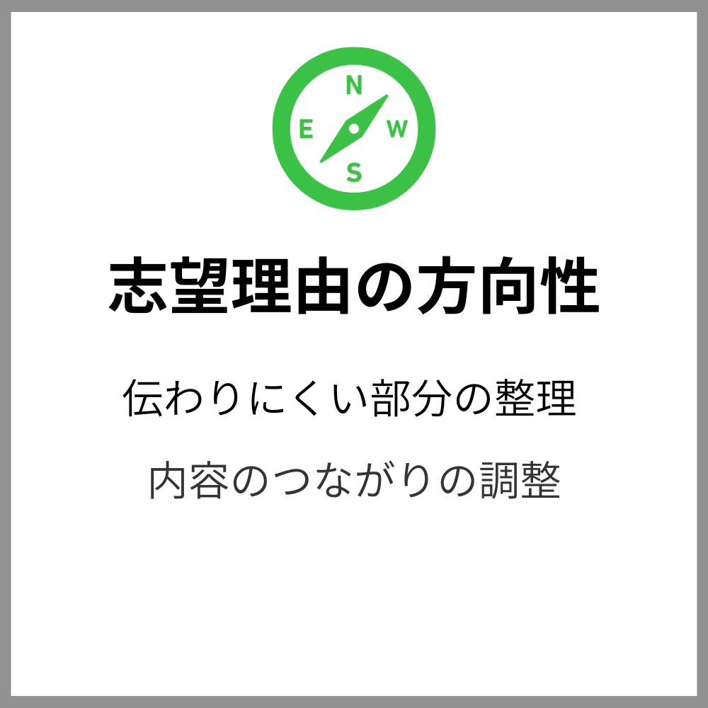 何を書けばいいのか分からない状態から、あなた自身の強みや経験を整理し、志望理由の“軸”を言語化します。